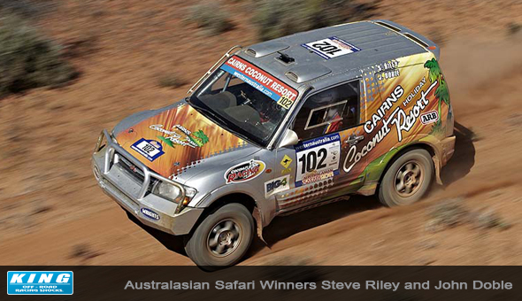 The Team of Steve Riley and John Doble, (2008 and 2009 overall winners), drove a smart race in their King Shocks equipped, 500hp Mitsubishi, Montero. After finishing third in the prologue, the team took the early lead after stage one. Over the next three days they maintained a steady pace that kept them in a solid second place overall. On day five, the team took the lead and stayed out front for the remainder of the safari finishing one hour and fifty minutes ahead of the second place team.